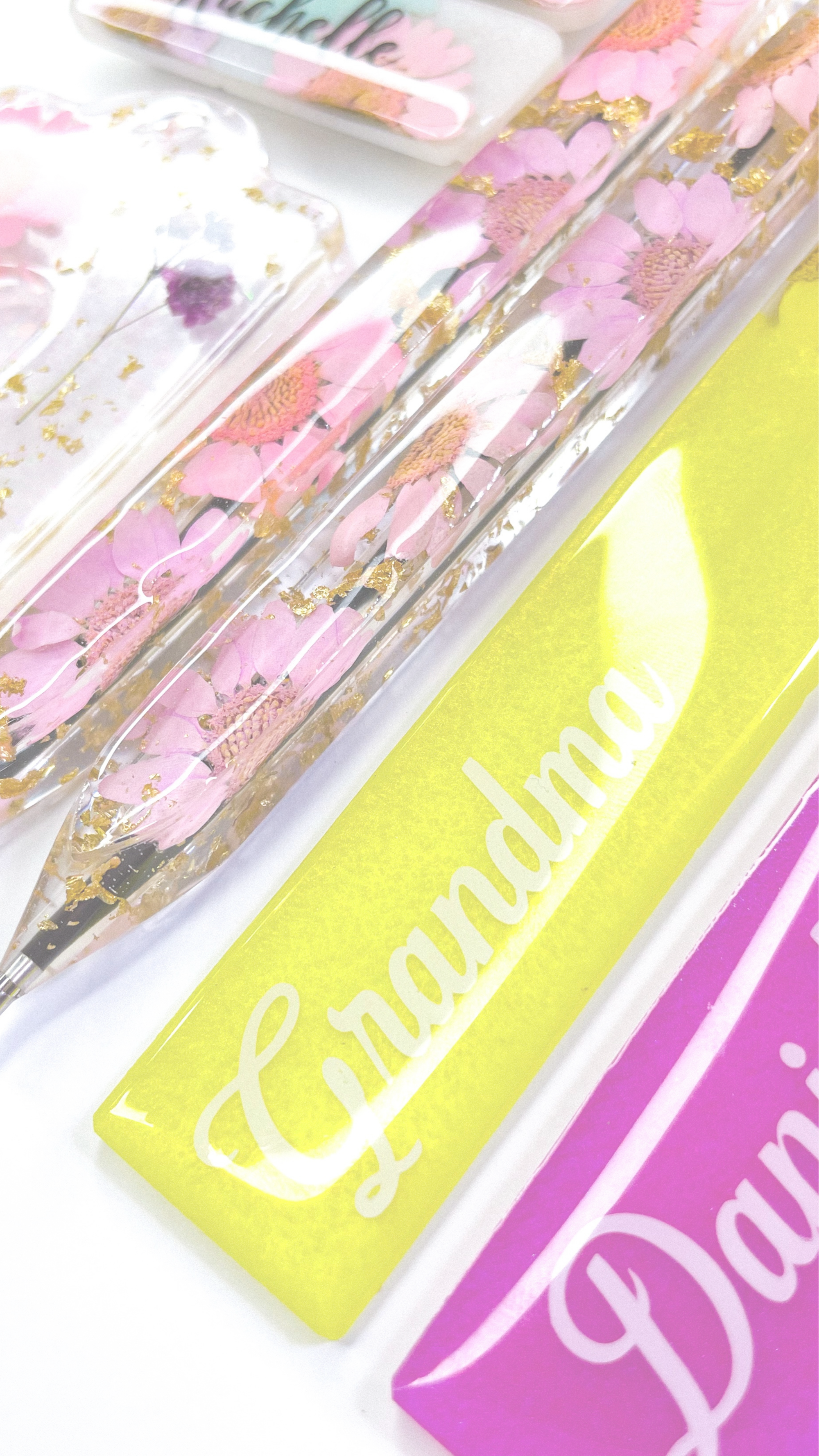 From pressed florals to shimmering glitter, each creation is handcrafted with intention — because personalised pieces should feel as special as the person receiving them.