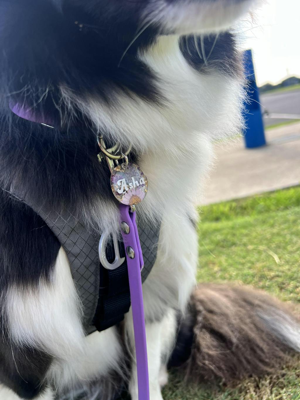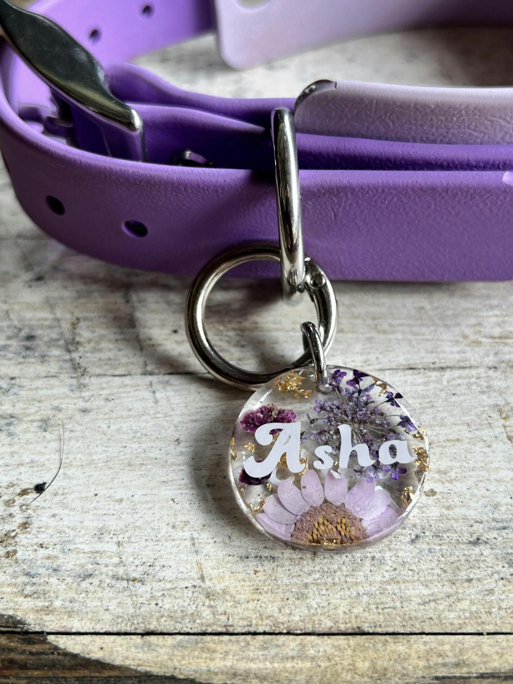 Transparent Purple Floral Resin Dog Tag