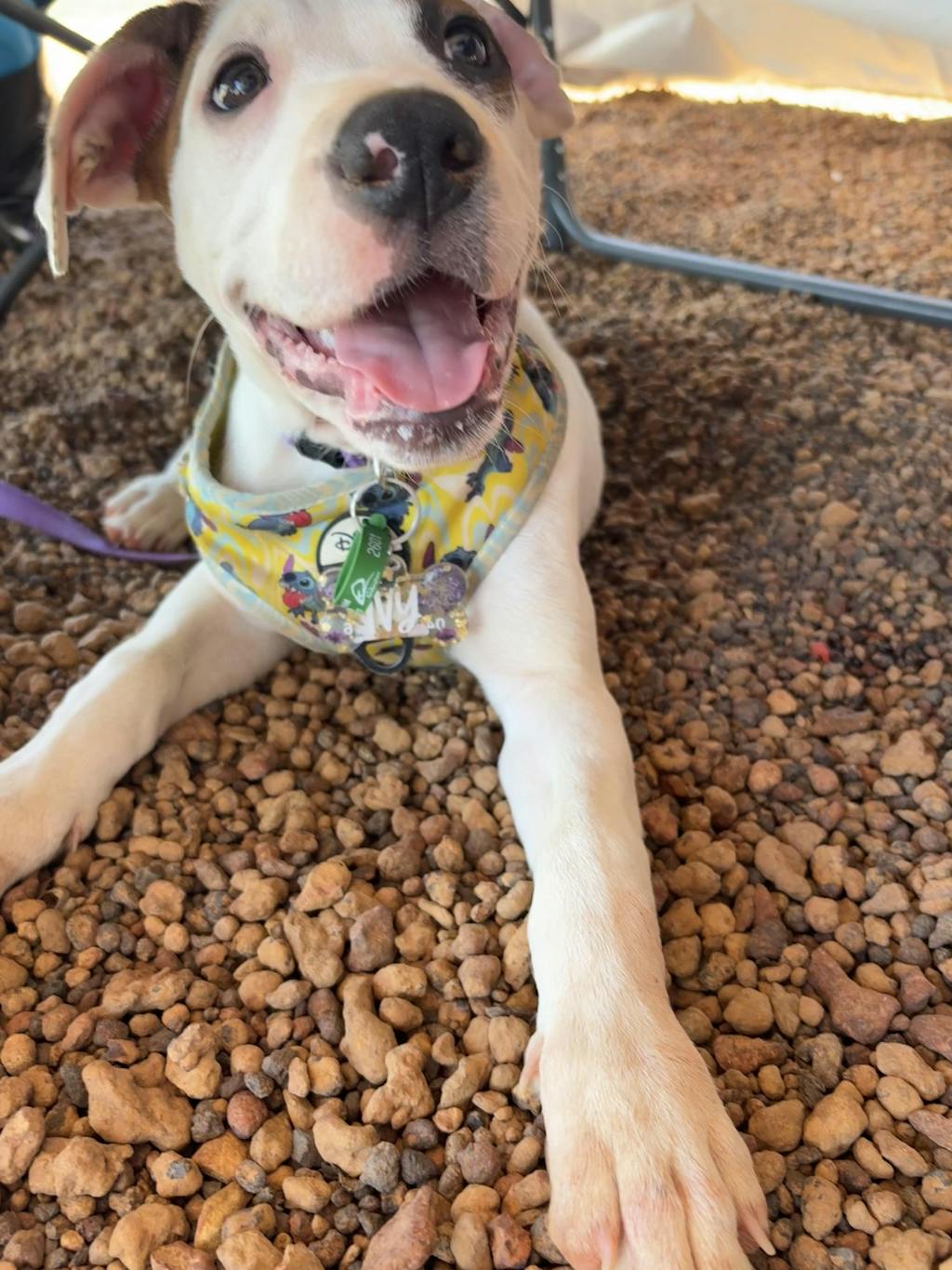Lily Rose I was excited to purchase one of these to welcome my new puppy Ivy into the family! I love these tags and they look so pretty!! It suits her so well! If only she would hold still for a good picture!